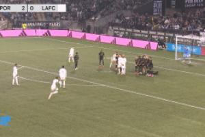 体育资讯04月20日讯 在今天进行的一场美职联比赛中,洛杉矶FC客场对阵波特兰伐木工,比赛第45分钟,洛杉矶FC在禁区弧顶获得任意球机会,吉鲁直接射门,皮球击中横梁下沿后弹进门线内。